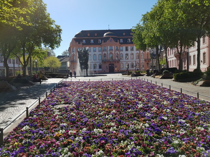 Mainz is lovely. The train station is busy and convenient and there are plenty of nice walks to be had on foot. Local attractions include various flowerbeds in a riot of colors, which burst with vibrance and that special springtime bloom.