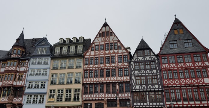 The next day is open to me and I can do whatever I want, so I set off towards a classic destination, the old town, planning to walk around and refresh my memories. Frankfurt’s city center around its cathedral, Dom Römer, had been severely destroyed during air bombings in the 1940s and painstakingly restored since then. Arriving at the square that is still relatively quiet for a Friday morning, I pause to take it all in. It’s a pretty sight.